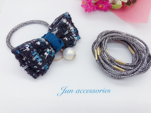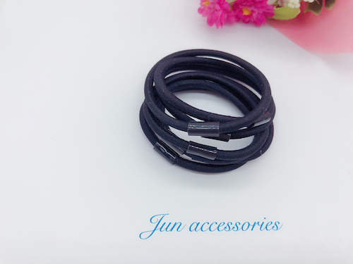 シンプルなヘアゴムです。黒、シルバーと黒の2色です。リボンヘアゴムは別売です。 黒 サイズ:ゴムの太さ約4mm シルバーと黒 サイズ:ゴムの太さ約25mm *販売単位:5個